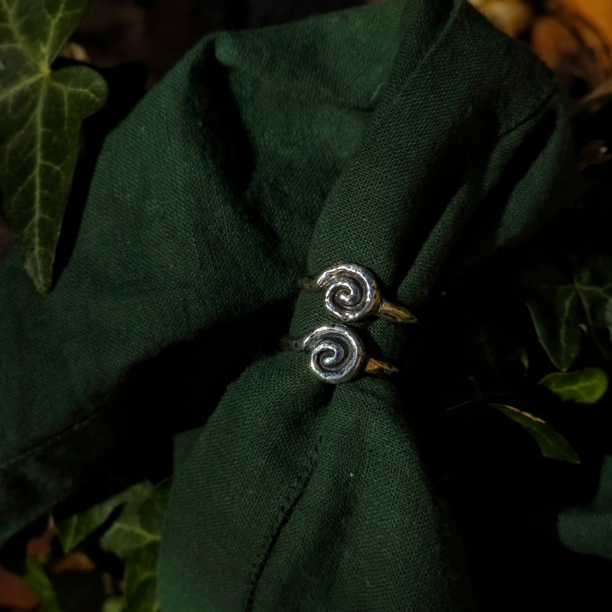 Spiral ring, a symbol of growth, renewal, and infinite possibilities. Individually hand carved, this enchanting ring features a delicate spiral design, echoing the sacred patterns found in nature from unfurling ferns to ancient petroglyphs. Spirals have long been revered in mystical traditions, representing personal evolution, the cycles of life, and the connection between the earthly and the divine. Whether worn as a reminder of your own journey or as a talisman of transformation, this ring carries a deep and grounding energy.