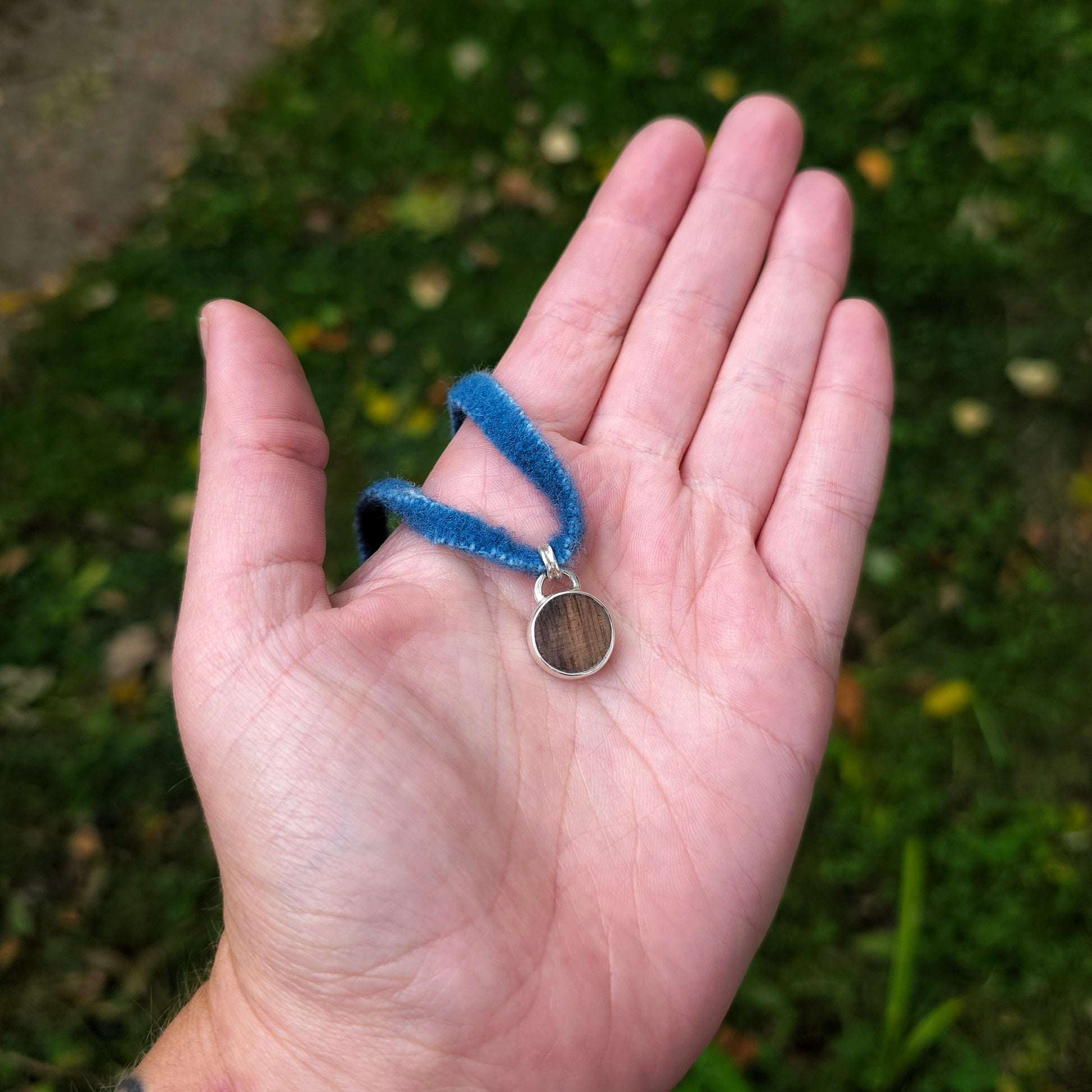 Handmade ‘touch wood’ necklace charm. Crafted from silver and wood. Each piece is unique and one of a kind with wood being like a fingerprint, no two are the same. The saying touch wood comes from the belief that when touched the trees spirit will ward off evil or grant you a wish, wear this touch wood charm so you always have a piece of wood with you to touch.