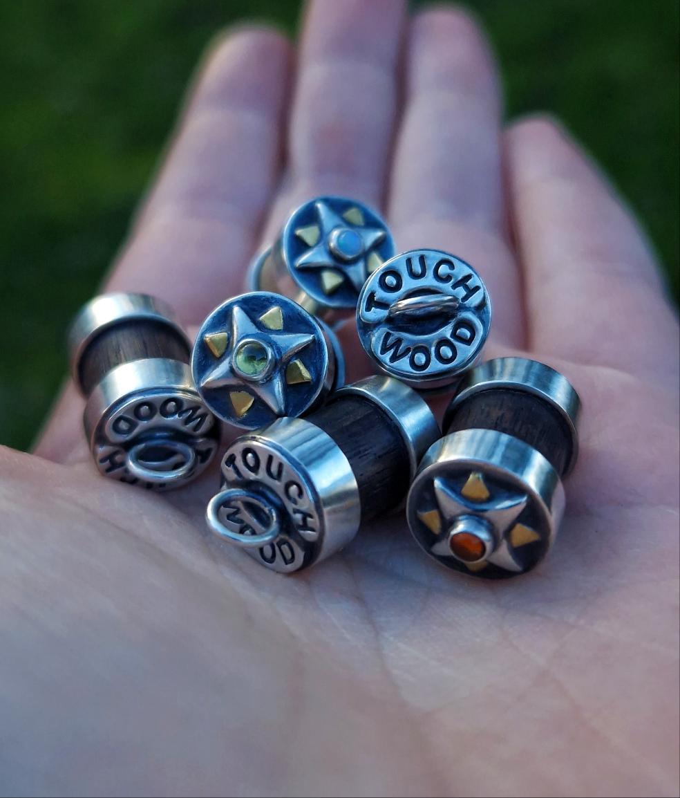 Handmade ‘touch wood’ Charm. Crafted from silver, brass and wood. Each piece is unique and one of a kind with wood being like a fingerprint, no two are the same.